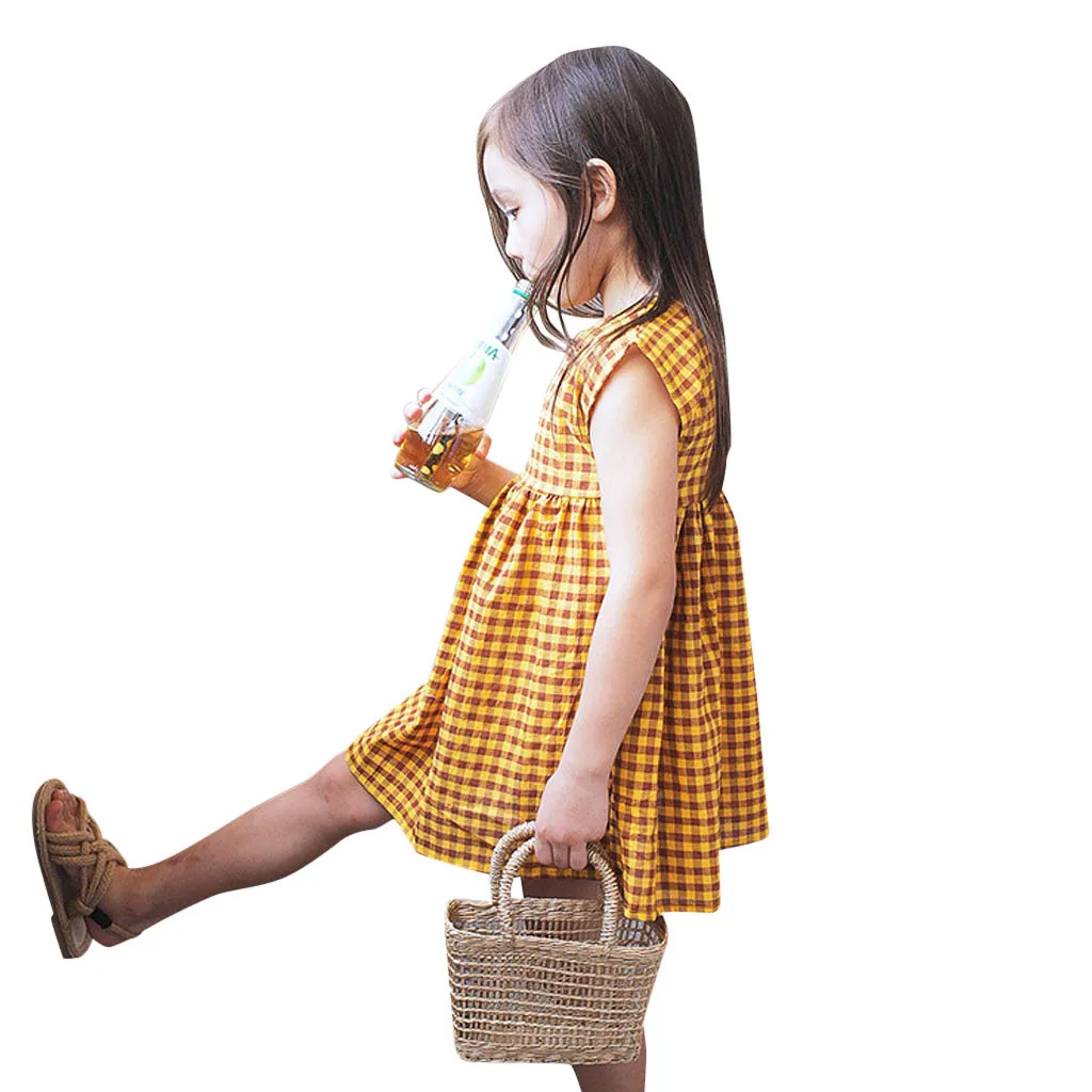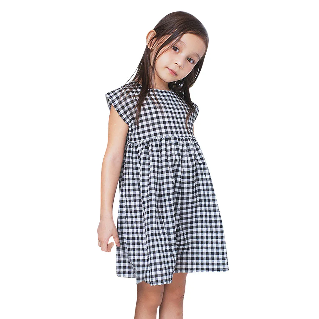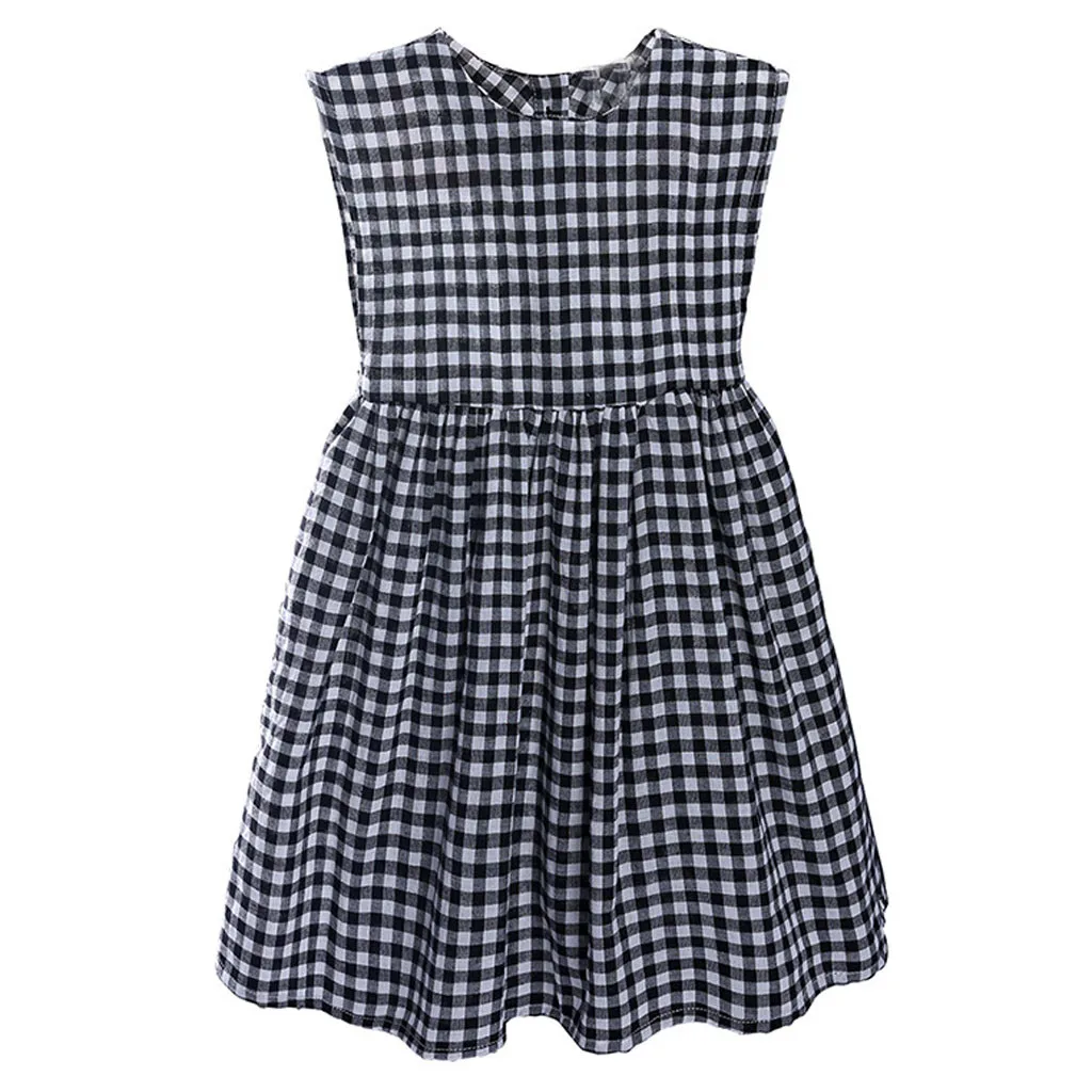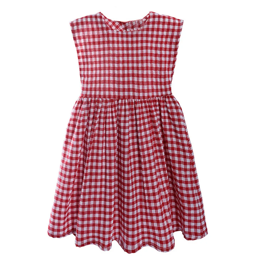 Toddler Kids Baby Girls Sleeveless Plaid Casual Princess Dress Sundress Summer