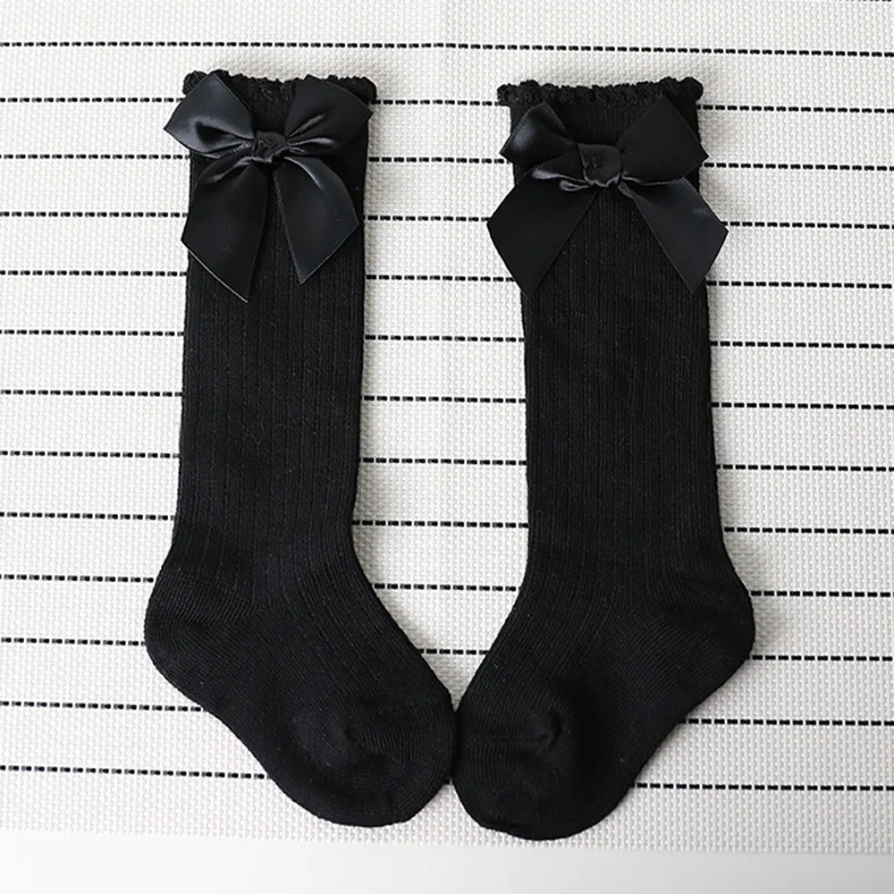 Новые детские носки Длинные мягкие хлопковые кружевные детские носки до колена с большим бантом для маленьких девочек удобные детские носки # BL5