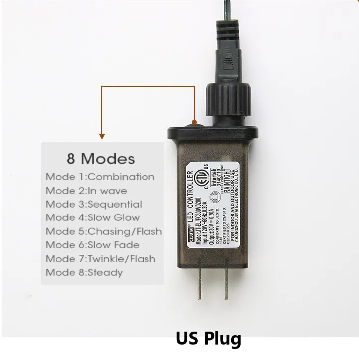 8 режимов воспроизведения: комбинация, в волнах, последовательных, ленивых, чеканка/вспышка, медленное выцветание, мерцание/вспышка, и постоянное включение