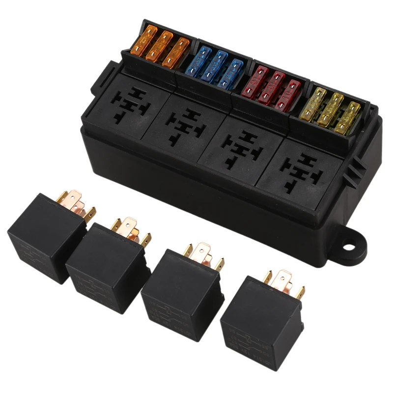 Новый-12 способ лезвие держатель предохранителя коробка с лопатой терминалы и предохранитель 4 шт 4Pin 12В 40A реле для автомобиля грузовика прицепа и лодки