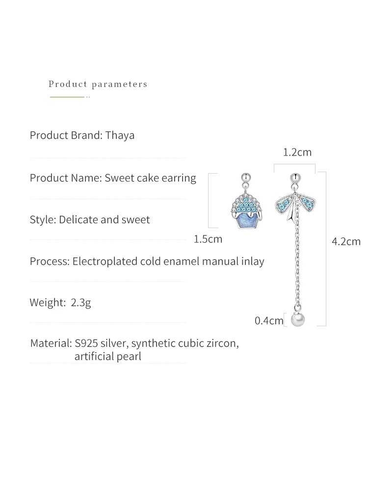 Бренд товара: Thaya Наименование товара: серьги в виде сладкого торта Материал: Серебро S925 пробы, синтетический кубический циркон, искусственный жемчуг Процесс: Гальваническая холодная эмаль Ручная инкрустация Вес: 2,3 г Размер: 4,2 см Стиль: нежный и милый