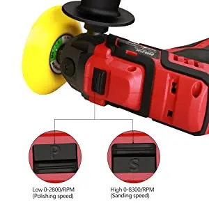 С реверсивным управлением, скорость 0-2800р/мин и 0-8300р/мин. Переменная скорость, чтобы избежать распыления полировального соединения во время запуска. Два режима скорости позволяют использовать для различных шлифовальных и полировальных задач.