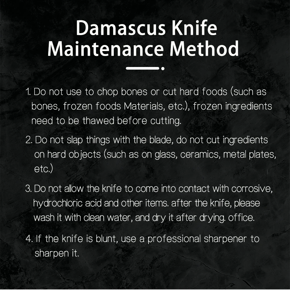 В связи с разницей цветовой и световой настройки мониторов, фактический цвет может немного отличаться от цвета картинки. Возможны отклонения в 2-3 см вследствие измерений вручную. Описание продукта: Многофункциональный нож-это универсальный Профессиональный кухонный дамасский нож, который можно прекрасно нарезать, нарезать нарезанными кубиками овощами, фруктами и мясом. Подходит для профессиональных поваров, кулинарных специалистов, поставщиков продуктов питания и начинающих семейных поваров. Супер острый край-67-слой японский Дамасская супер сталь с полированной поверхностью поверхности. Устойчивый к коррозии и прочный. Изогнутые края более острые, более прочные и острые. Он может быть стабилизирован при 60 ± 2 HRC, с вакуумной термообработкой твердостью и долговечной четкостью. Изысканный узор-изысканный узор-дамасский узор из 67 слоев дамасской стали, накладываемый ковкой. Красивые и стильные, это привлекательно. Также подходит для сбора и отображения. Уникальный дизайн ручки-уникальный дизайн формы хвостовика. Притягивающий взгляд. Поверхность более блестящая и удобная. Эргономичный. Материалы, из которых изготовлена ручка главным образом. Затвердевшая устойчивая древесина. Он украшен двойными медными кольцами, которые не будут ржаветь. Лучший подарок-нож изысканный и красивый, с подарочными коробками высокого качества и набором ножей. Отлично подходит для подарка. Посылка в комплекте Как показано на картинке