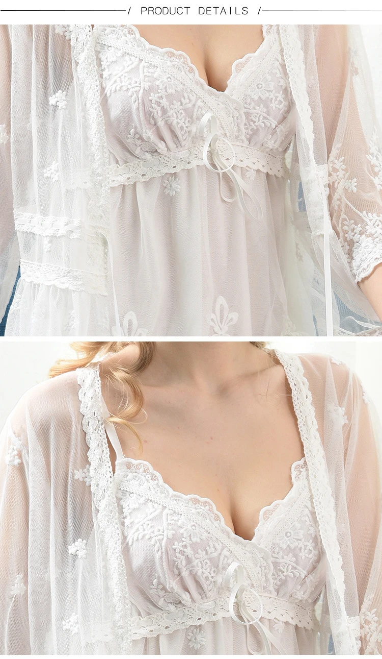 Комплект ночного белья включает: Ночное платье + халат + стринги