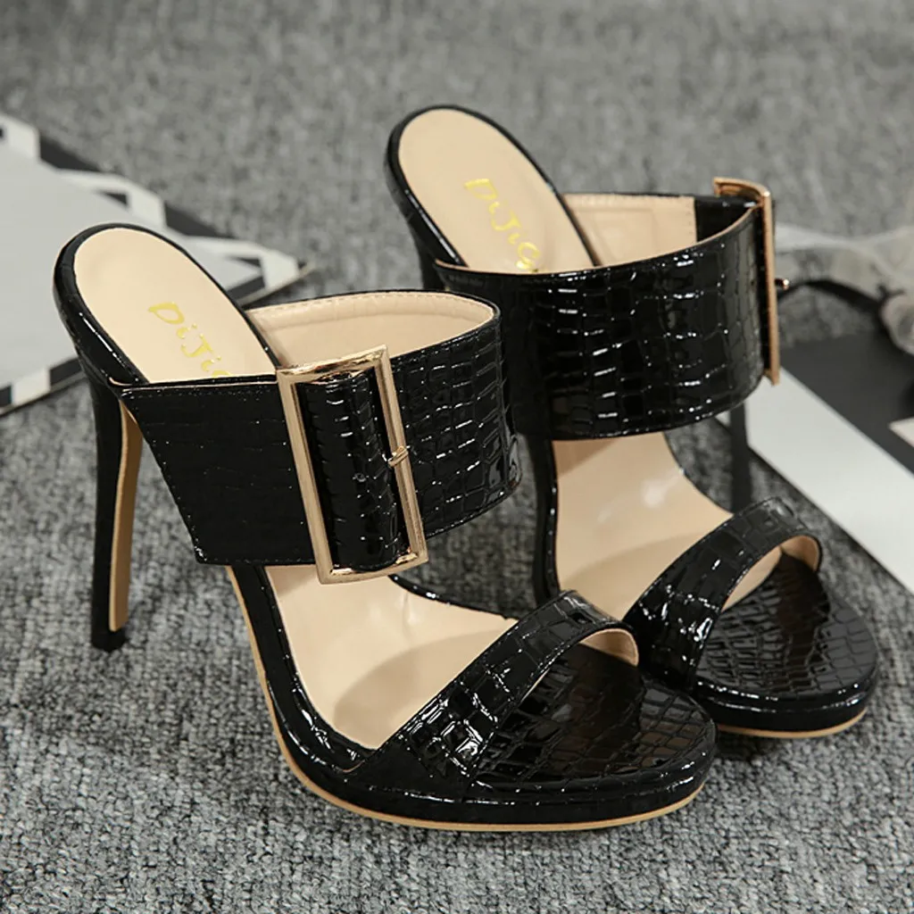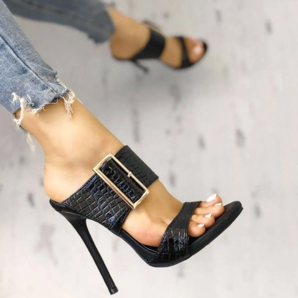 Женские босоножки на высоком каблуке-шпильке; слипоны с открытым носком; обувь с пряжкой; Повседневные тапочки