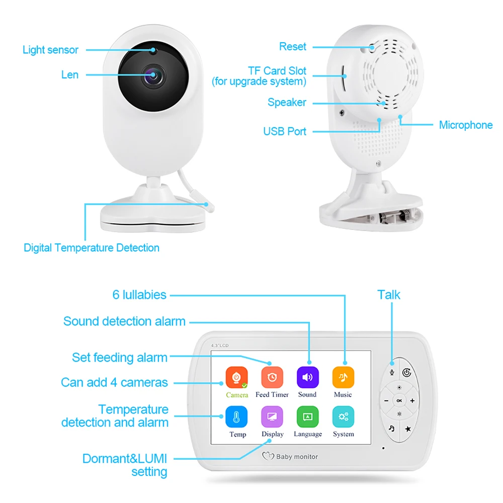 4,3 дюймов крик младенцев ЖК-дисплей ИК Ночное видение 2 way Talk