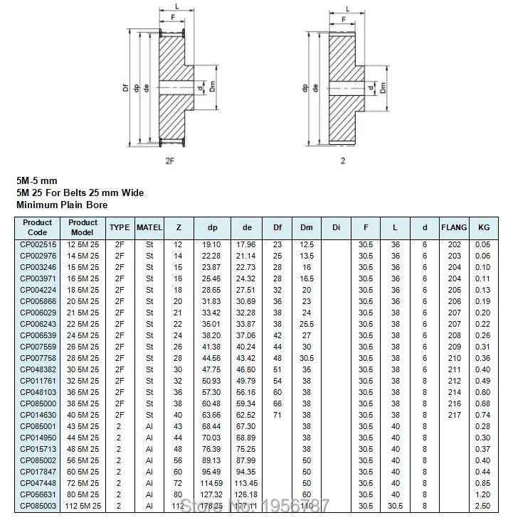 HTD5M шкив синхронизации каталог для ширины ремня 25 мм