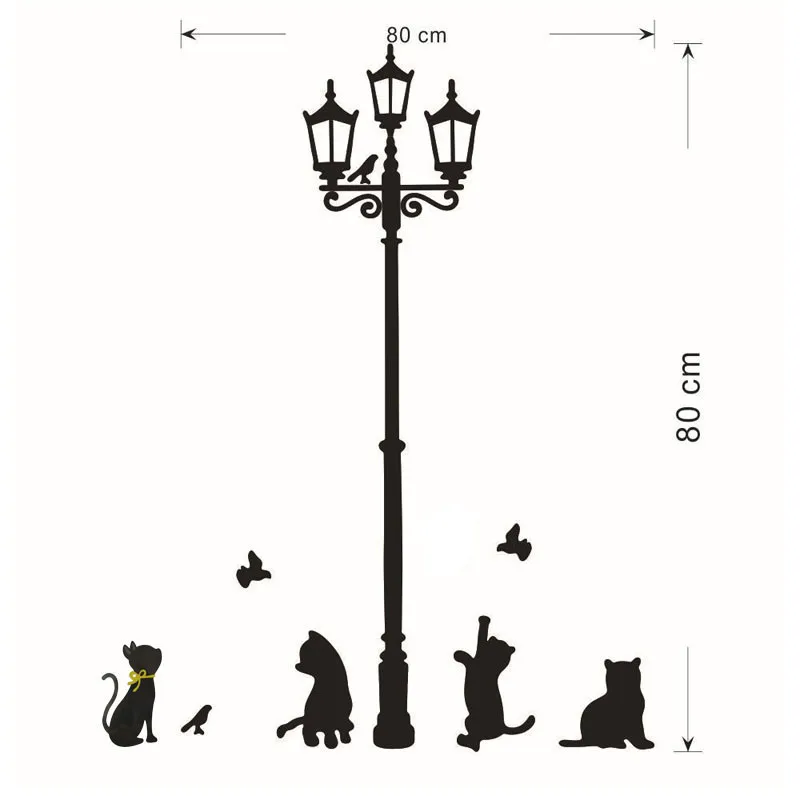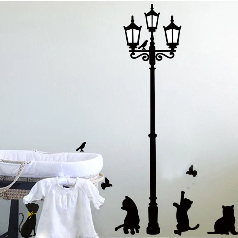 Кошки уличные лампы огни наклейки на стену съемный художественный виниловый Декор