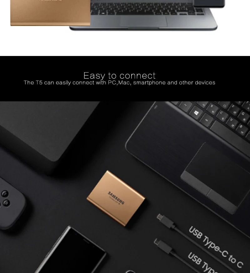 1.Высокое качество: Оригинал, SAMSUNG, T5 портативный SSD 1 ТБ внешний твердотельный диск USB3.1 Type-C жесткий диск для ноутбука.