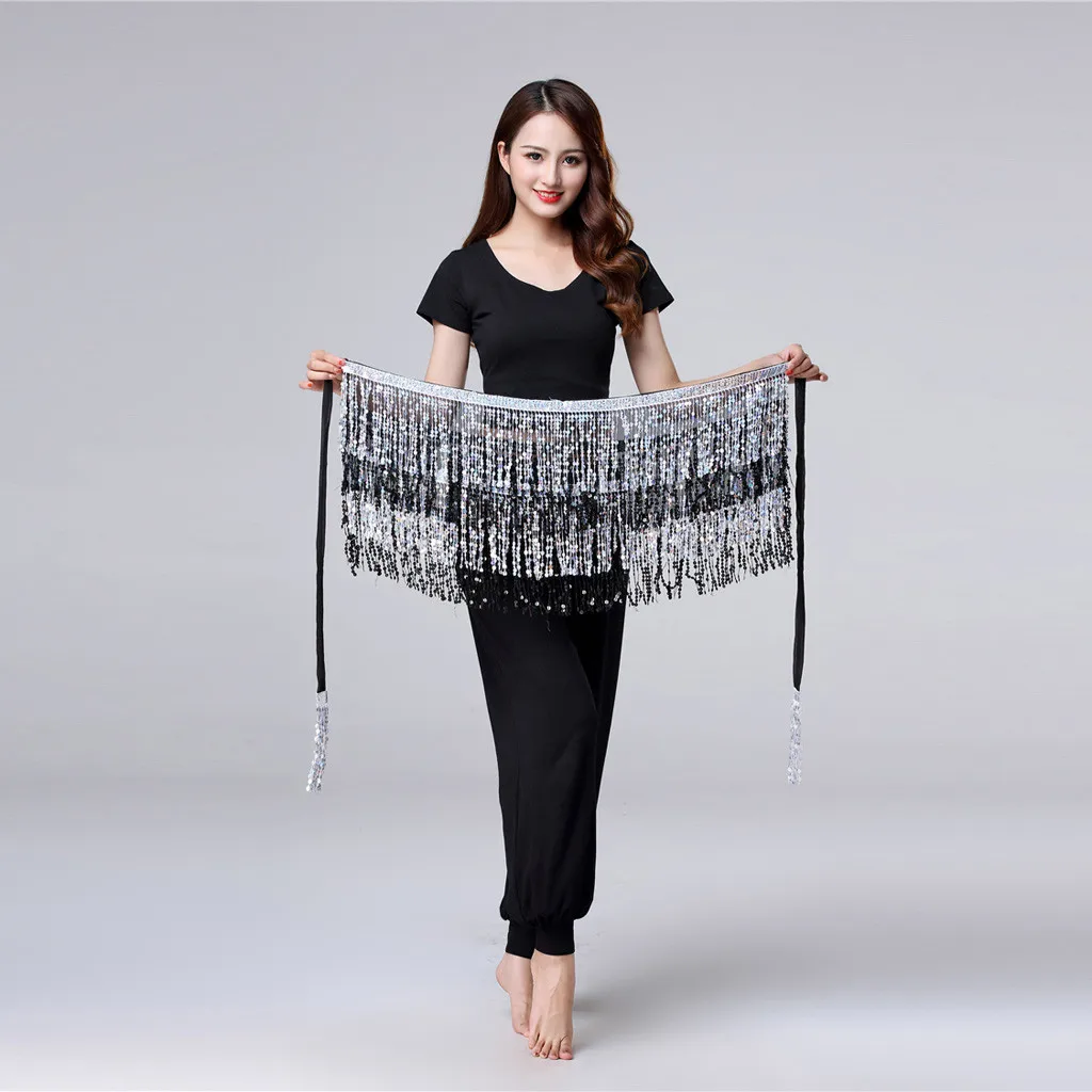 Женский костюм для танца живота с блестками; Юбка с бахромой Клубная мини-юбка
