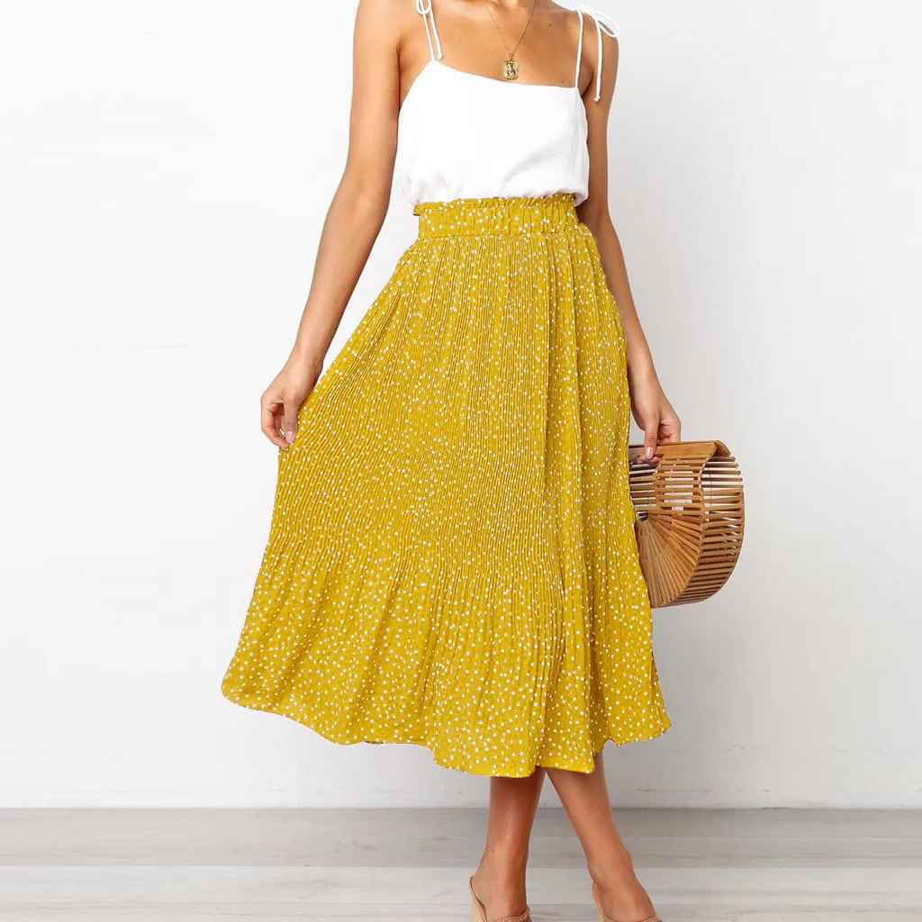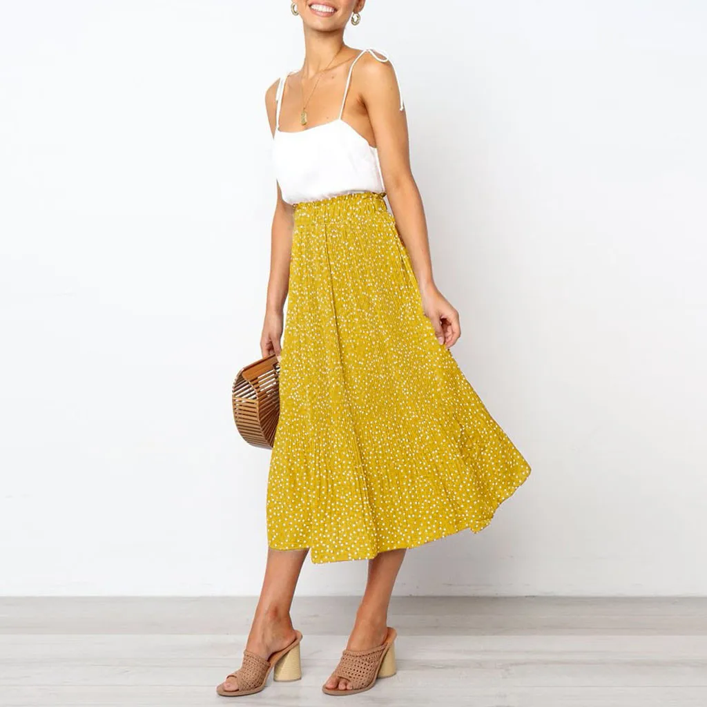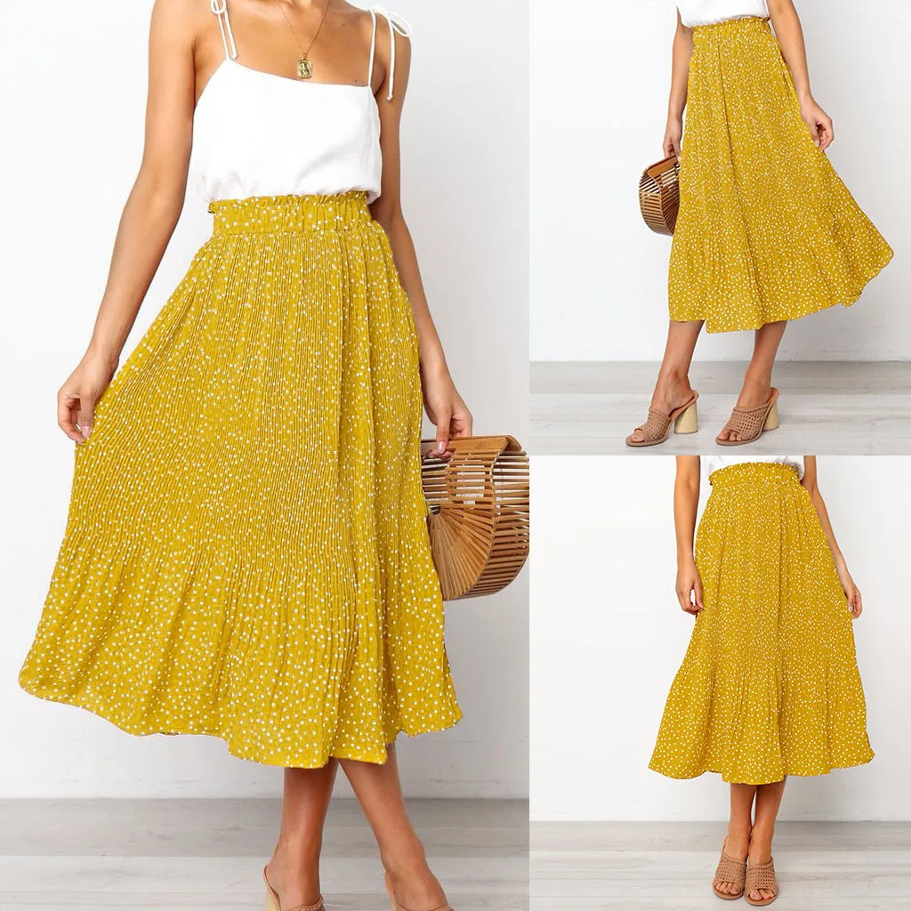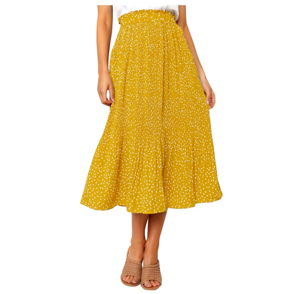 Модная Коктейльная Летняя женская юбка в горошек с высокой талией, длинная юбка
