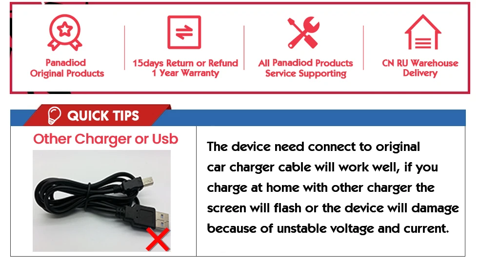 Теплый и важный наконечник 1. Устройство необходимо подключить к оригинальному автомобильному Зарядному кабелю, будет работать хорошо, если Вы заряжаете дома с другим зарядным устройством, экран будет мигать или устройство повредит из-за нестабильного напряжения и тока. 2. Перед заказом версии 3G/4G, пожалуйста, проверьте sim интернет-поддержку вашего местного диапазона: FDD LTE: Поддержка 1800/2100 МГц WCDMA: Поддержка 900/2100 МГц GSM: Поддержка 900/1800 МГц .. В противном случае эта функция не работает; При использовании sim-карты, пожалуйста, вставьте sim-карту в правильном направлении, вы можете следить за картинкой на веб-странице (см. Описание о 3G/4G) В: почему нет ADAS? О: нужно нажать на значок «car', чтобы открыть, после подключения модуля GPS Если вы потеряете adas с заводской установкой, просто нужно подключиться к интернету, а затем перезагрузить устройство, снова появится adas; В: какой язык поддерживает устройство? Ответ: поддержка: китайский, английский, русский, немецкий, японский, чешский, испанский, французский, итальянский, Латвийский, голландский, польский, румынский, словенский, вьетнамский, болгарский, тайский, арабский, корейский В: какая карта поддерживает устройство? О: перед отправкой мы установим sygic карту в соответствии с вашим адресом; Но она также поддерживает другие карты, такие как Google map, Yandex map, Waze map, T-map и т. д.; В: при использовании карты нужен Интернет? О: вы можете скачать автономную карту, а затем не нужен Интернет; Если вам нужна онлайн карта, то необходимо подключить wifi или 3G/4G sim-карту В: почему нет звука? О: пожалуйста, выключите FM, затем звук;