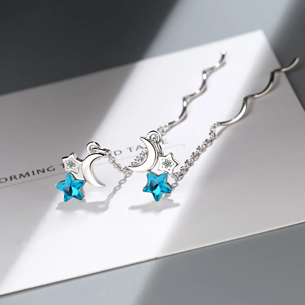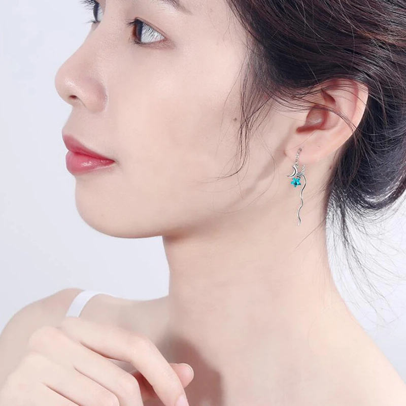 Модные синие циркониевые длинные драгоценные серьги-кисточки в форме звезды луны из стерлингового серебра 925 пробы с волнистой цепочкой, Висячие серьги для женщин, аксессуары Материал: серебро 925 пробы, циркон Состояние: 100% новый бренд Повод: вечерние/Свадебные/Помолвочные/День рождения/День Святого Валентина/День Матери Размер подвески: как показано на рисунке
