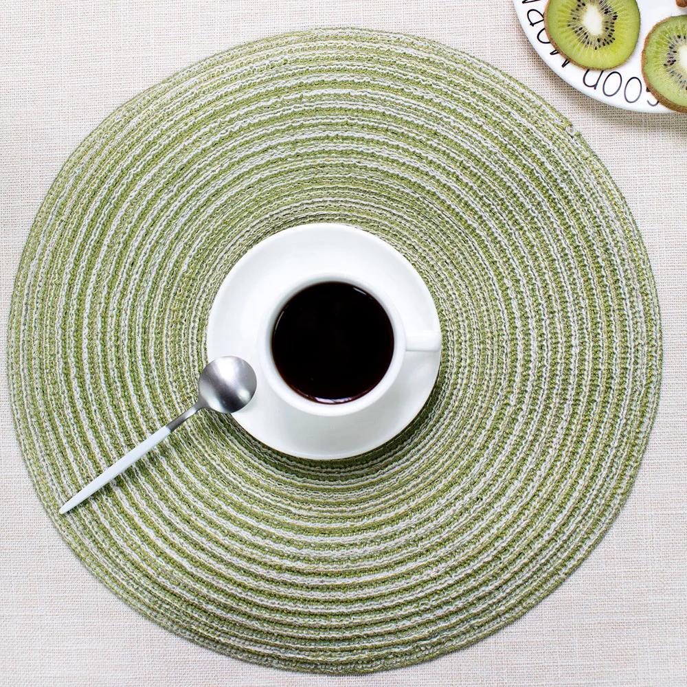Столовые коврики в западном стиле, пищевое утепление ковриками, тканые коврики для стола, моющиеся и быстросохнущие Можно использовать для размещения чашек, посуды и т. Д., чтобы предотвратить скольжение или сжигание стола, красивый, простой и элегантный, Простой и элегантный, также может быть помещен под вазу или пепельницу. Применение: кухня, гостиная Особенности: дышащая, хорошая термостойкость и ручная работа Размер (прибл.): 35 см Цвет: красный, коричневый, синий, зеленый, бежевый Упаковочный лист: 1xplacemat
