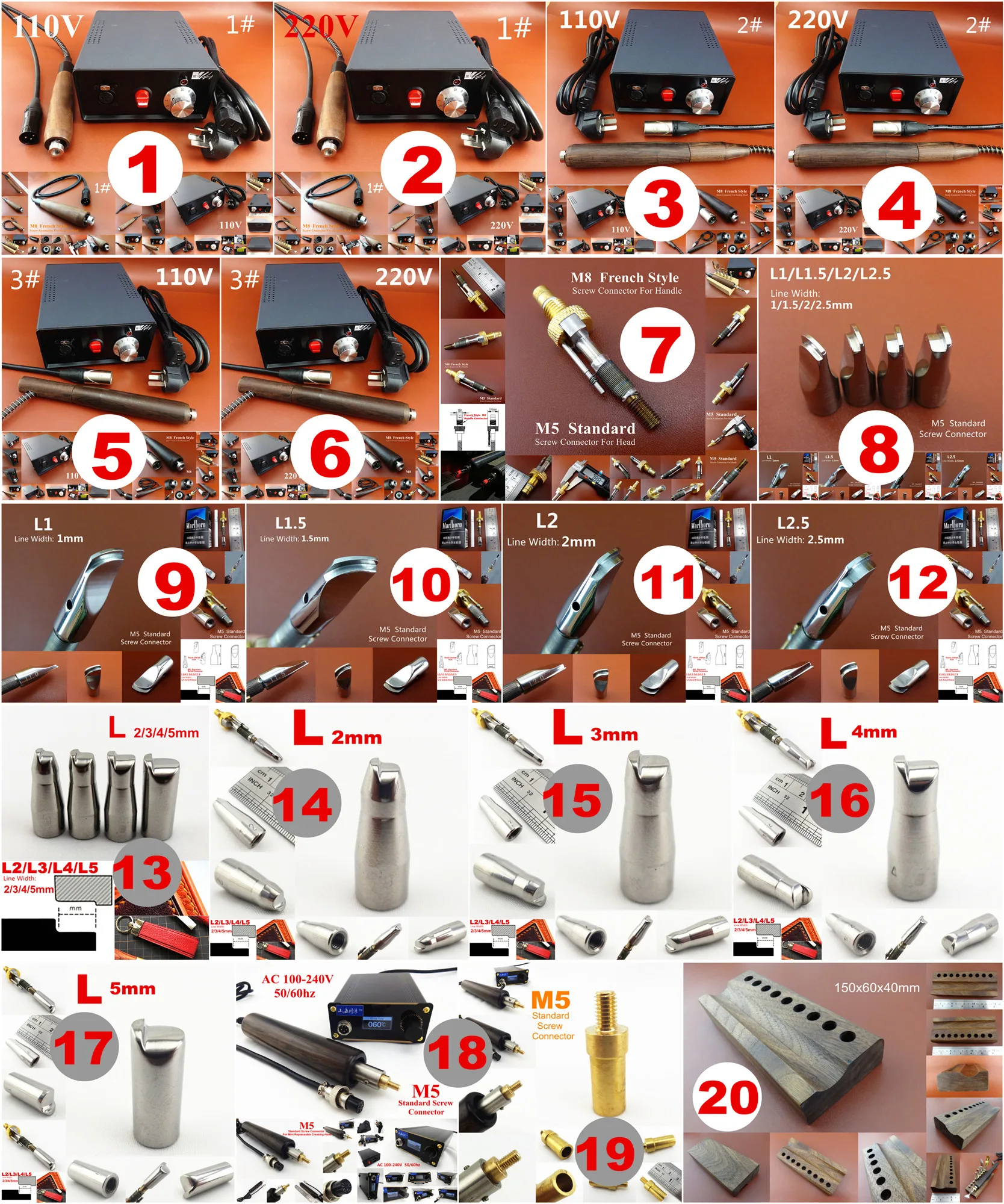 20 видов кожаного ремесла электрическая машина для сшивания краев паяльник набор инструментов для нагрева тела широкий боковой пресс замена наконечника головки