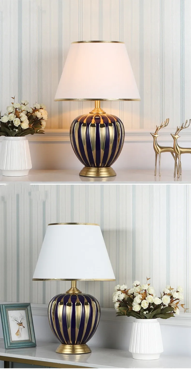 Chinese Style Purple Gold Stripes Ceramic Table Lamp For Bedroom Bedside Living Room Foyer Study Desk Reading Night Light 190179
