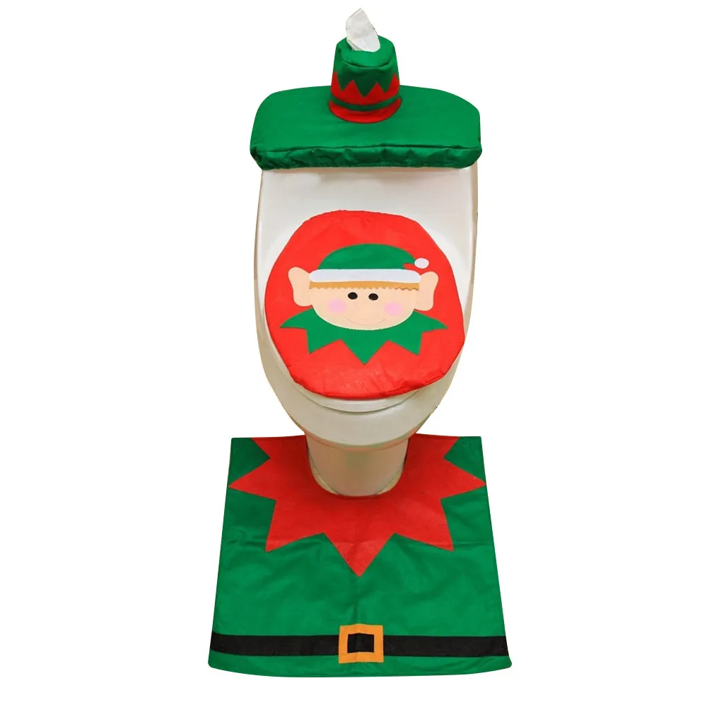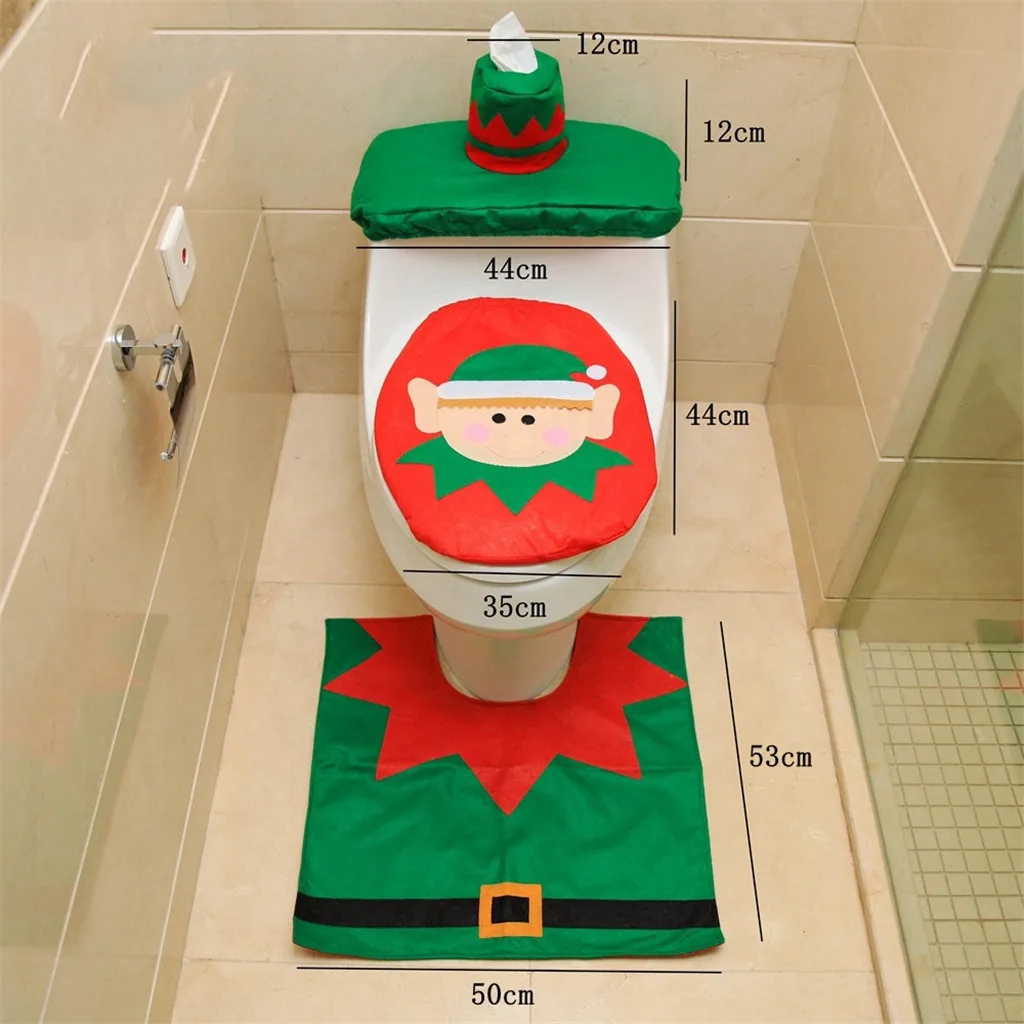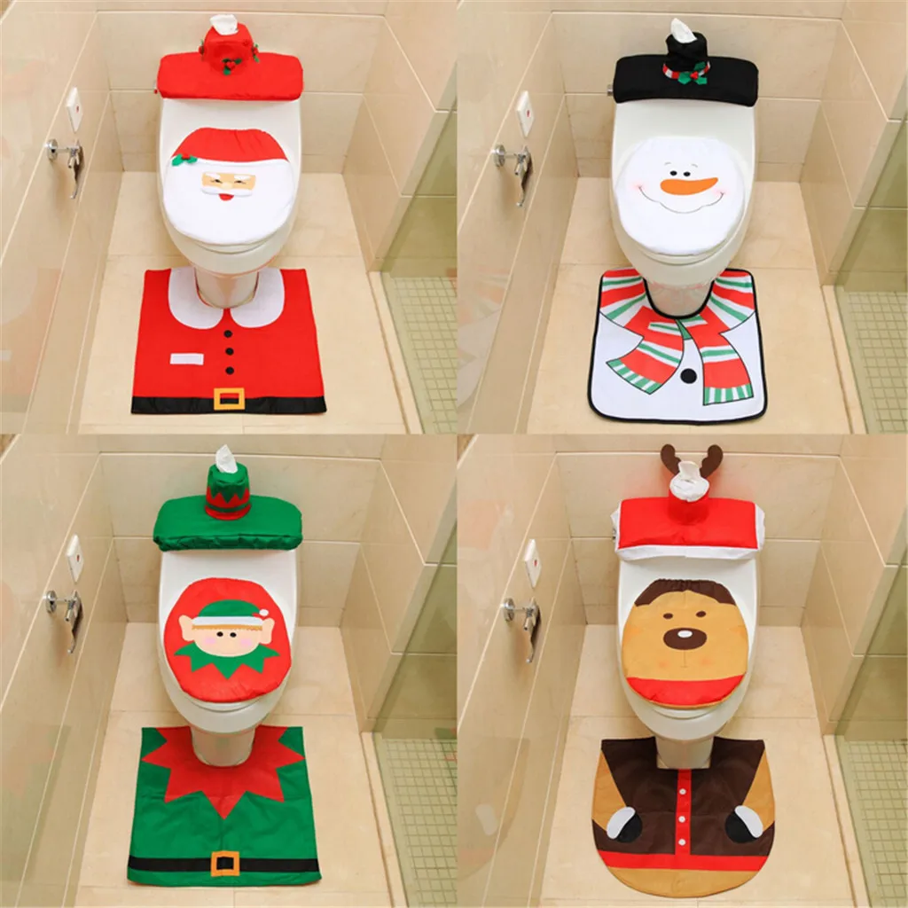 3 шт Необычные Санты сиденье для унитаза Чехол и коврик для ванной комнаты, Рождественский Декор