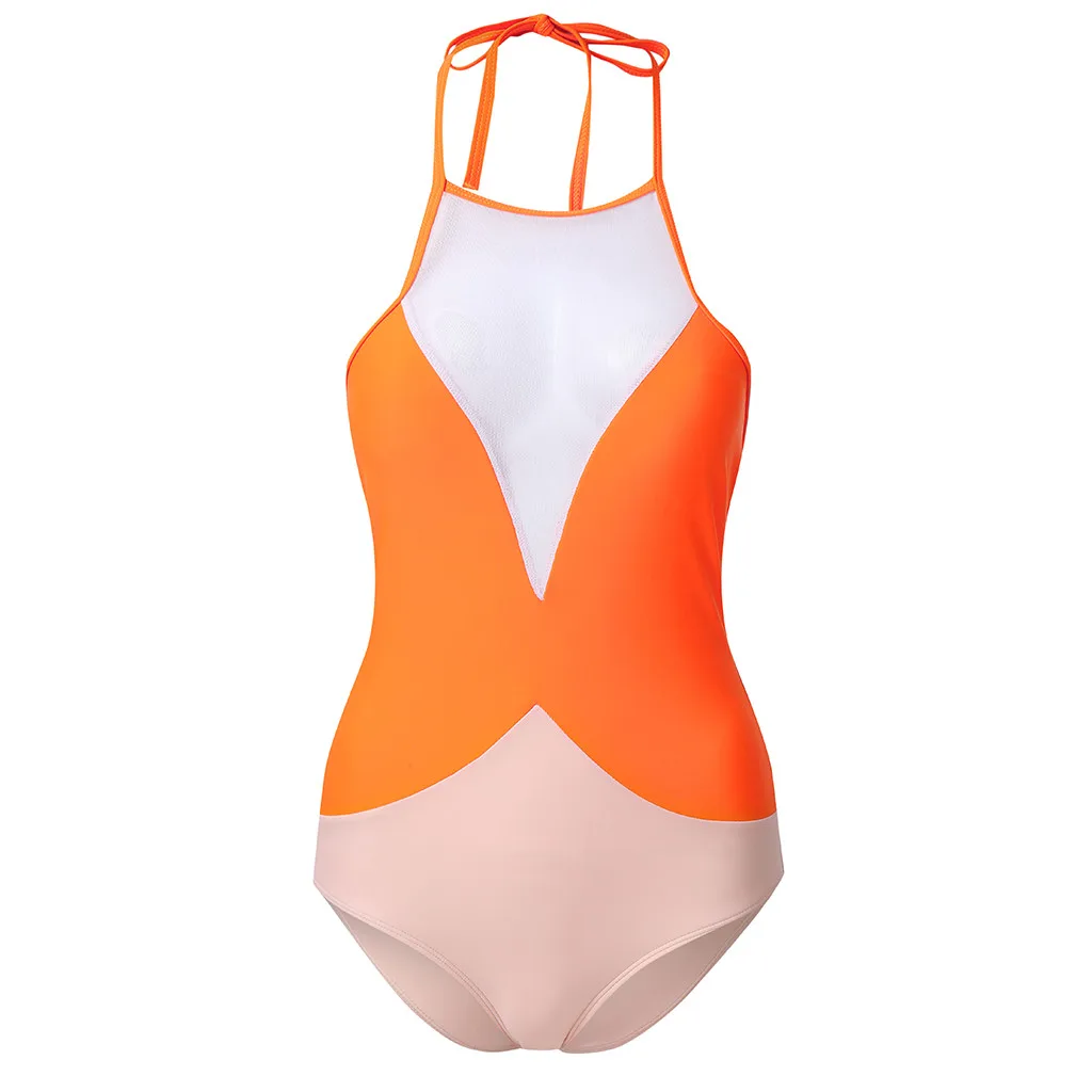 Бикини, Модный женский купальник, цельный, оранжевый, белый, из кусков, купальник, женский, спортивный, пуш-ап, сексуальный купальник для бассейна, 2020