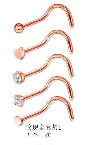 5 шт., стальные носовые шпильки, Ушные Кольца, ножные пирсинг, циркониевые носовые кольца, изогнутые пирсинг кольца, пирсинг тела, украшения, женские кольца