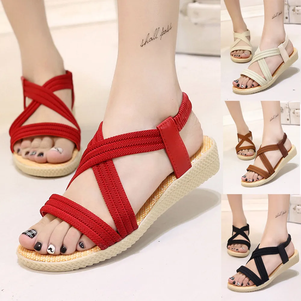 Для женщин Туфли на плоской подошве; женские сандалии для отдыха в богемном стиле; Уличная обувь с открытым носком