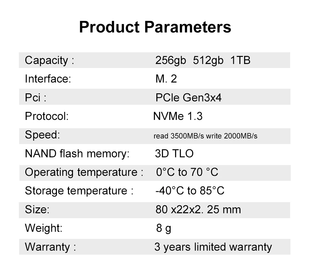 3.Несколько вариантов емкости:256 ГБ-1 ТБ, модели большой емкости на ваш выбор.