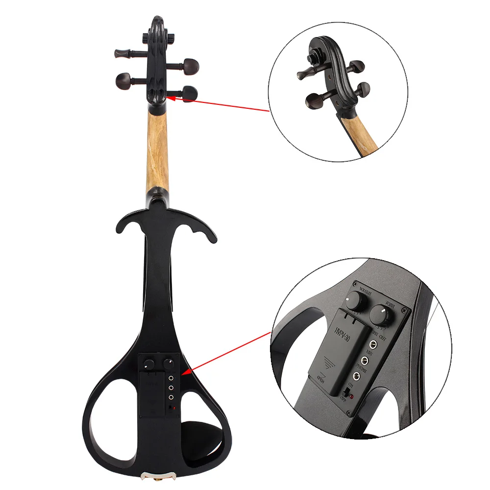 4/4Электрическая скрипка, тело и шея изготовлены из цельной кленовой древесины.