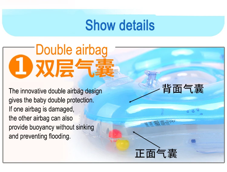 Конструкция с двойной ручкой на кольце для плавания удобна для мамы, чтобы контролировать направление плавания ребенка и безопасность в любое время.