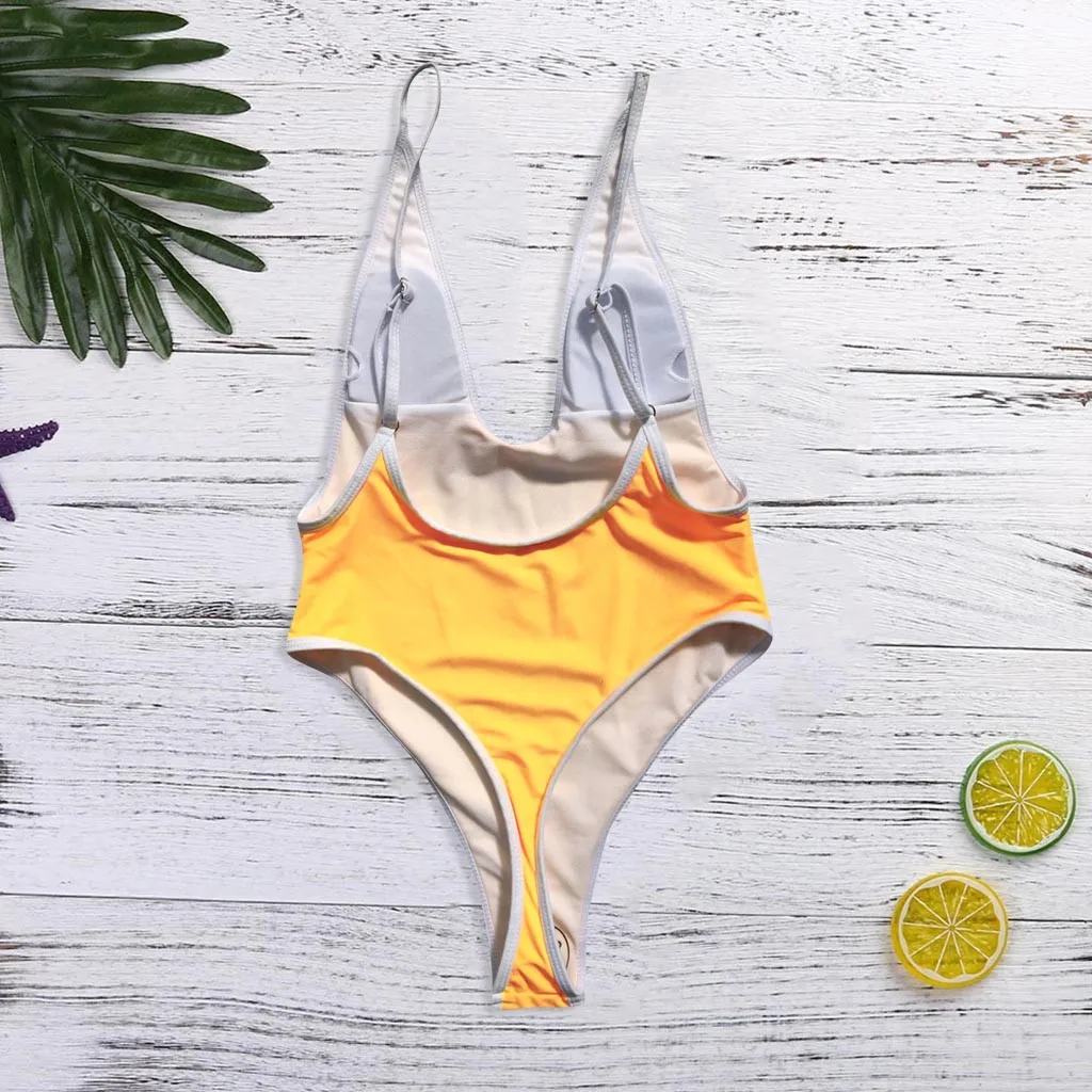 Цельный женский купальник с v-образным вырезом, бикини, монокини, купальник, купальный костюм, пляжная одежда