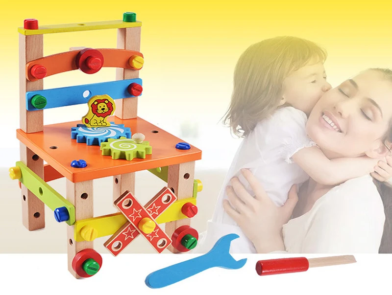 Детские Многофункциональные деревянные блоки для стульев Монтессори, игрушки для детей, Обучающие умные игрушки, красочные Развивающие деревянные игрушки