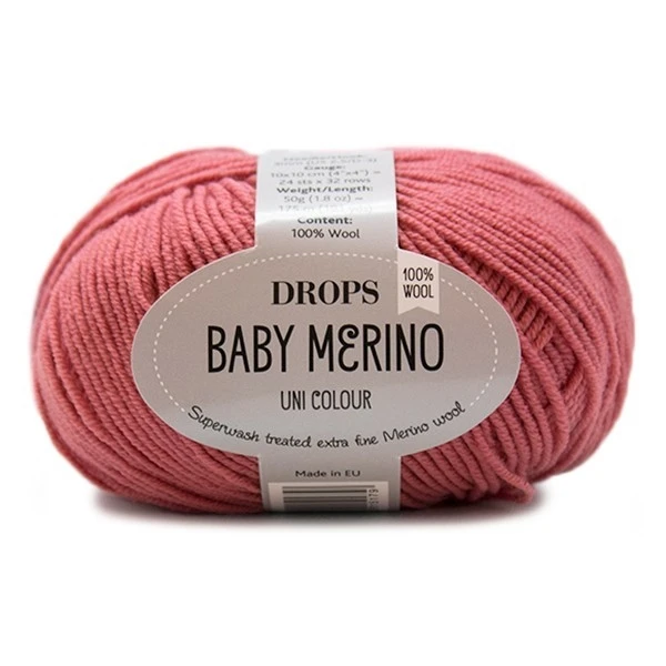 Baby Merino is made from 100% merino wool derived from the sheep wool of South Africa and South America. Very soft, non-barbed yarn is ideal for delicate baby skin, it can be knitted for newborns. In addition, the thread is processing superwash, and so the finished products can be washed in the car and they are perfect for daily use. MANUFACTURER: DROPS Composition: Merino & GE; % Weight: 50 gr. Thread length: 175 m. Country of Origin: Norway Spokes size: 2,5-3 Hooks size: 3-3,5 Attention!!! The color of the yarn on the photo may vary slightly from the real one due to the personal settings of your monitor or a lot of yarn.