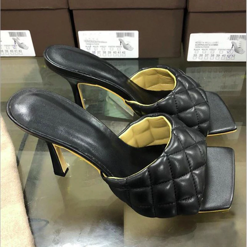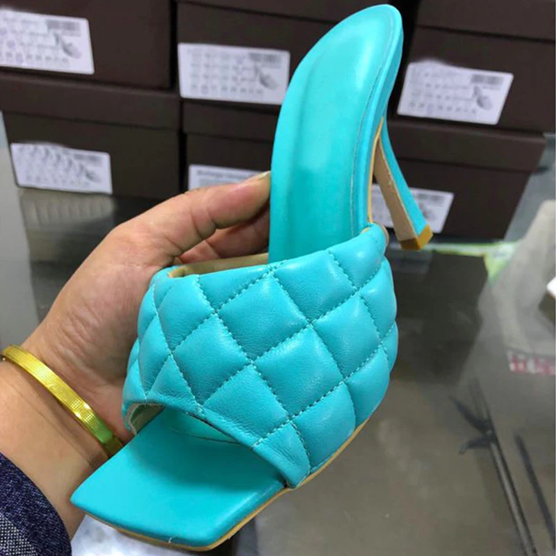 Женские шлепанцы из 100% натуральной кожи на высоком каблуке, модные открытые босоножки с квадратным носком, вечерние туфли для весны и лета