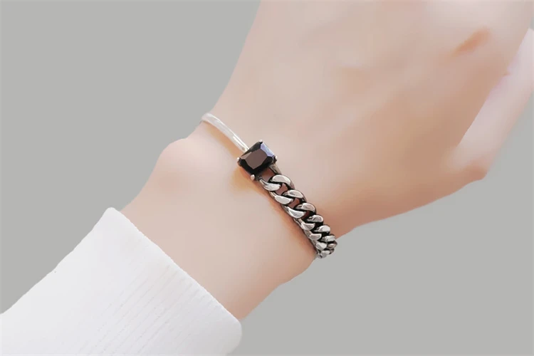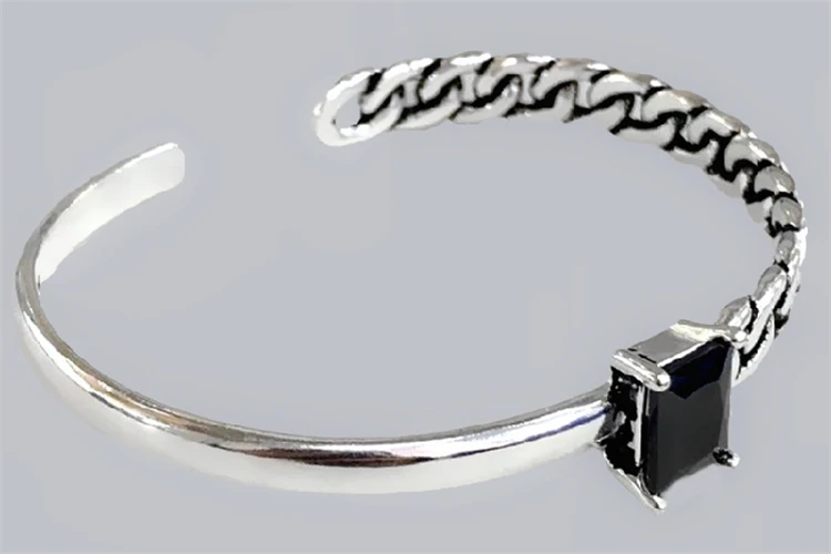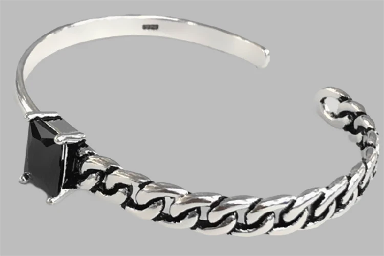 2020 новое поступление черный кубический цирконий камни 925 Настоящая Серебряная цепочка скрученные браслеты винтажные Ретро манжеты открытые женские браслеты
