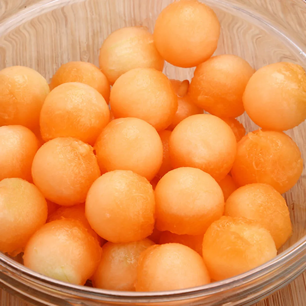 Идеально Круглые, одноразмерные шарики из дыни, создающие красивые фруктовые салаты и декоративные гирлянды.