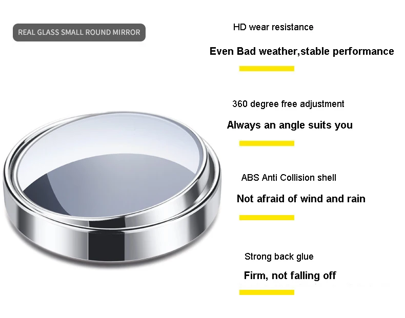 Название продукта: круглое мини-зеркало для слепых зон Цвет: черный, белый, серебристый Материал: АБС-пластик Регулировка зеркала: да Предназначен для увеличения видимости и улучшения безопасности вождения Легко приклеивается, Оторвите наклейку от зеркала, чтобы легко наносить ее на зеркало заднего вида автомобиля. Эффективно увеличивает угол обзора Преимущества: вы можете выбрать ширину регулировки Посылка включает в себя: 2 шт., зеркало для слепых зон