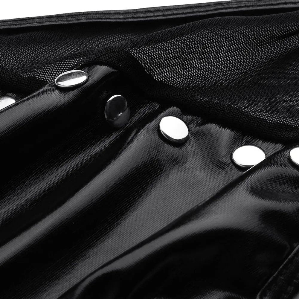 3.Прозрачные сетчатые вставки, лямки на шее, поясная деталь с шипами,