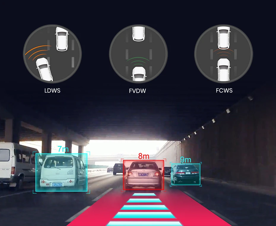 Несчастные случаи можно избежать, сохраняя безопасное расстояние. Система предупреждения о безопасности дорожного движения в зеркале рассчитывает расстояние в реальном времени между вашим автомобилем и автомобилем перед вами, во время вождения выше 30 км/ч на скоростных скоростях или до 30 км/ч в оживленном городе, и выдает 3-уровневое раннее предупреждение водителю в зависимости от опасности столкновения.