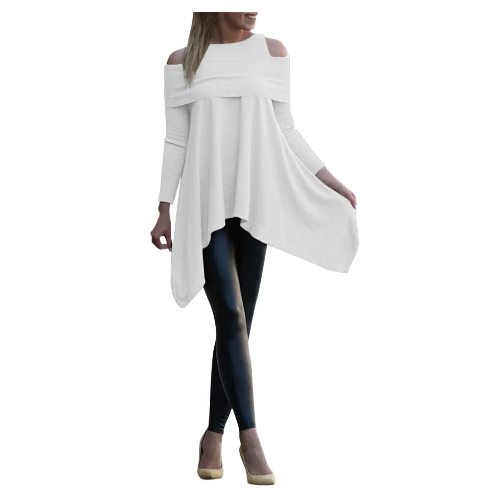 Женская однотонная Асимметричная Толстовка с длинным рукавом, Свободный пуловер с принтом, блузка