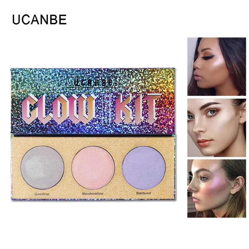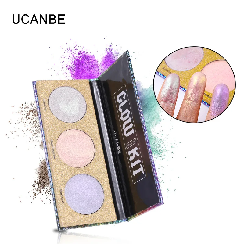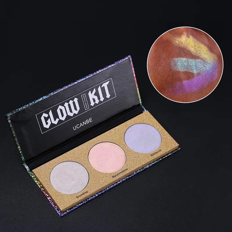 UCANBE бренд Хамелеон Кристалл сахар тени для век макияж Палитра хайлайтер бронзер светящиеся мерцающие 3 цвета Тени для век косметический набор