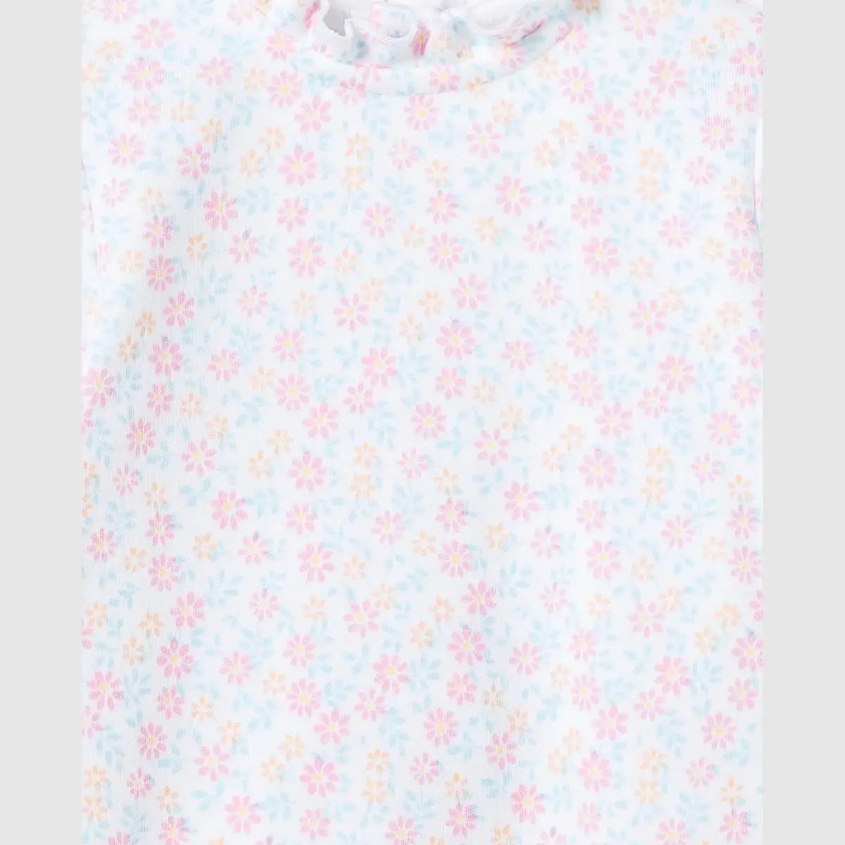 Длинная белая Пижама с контрастным принтом и оборками на шее.