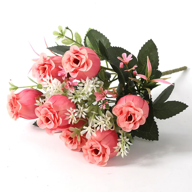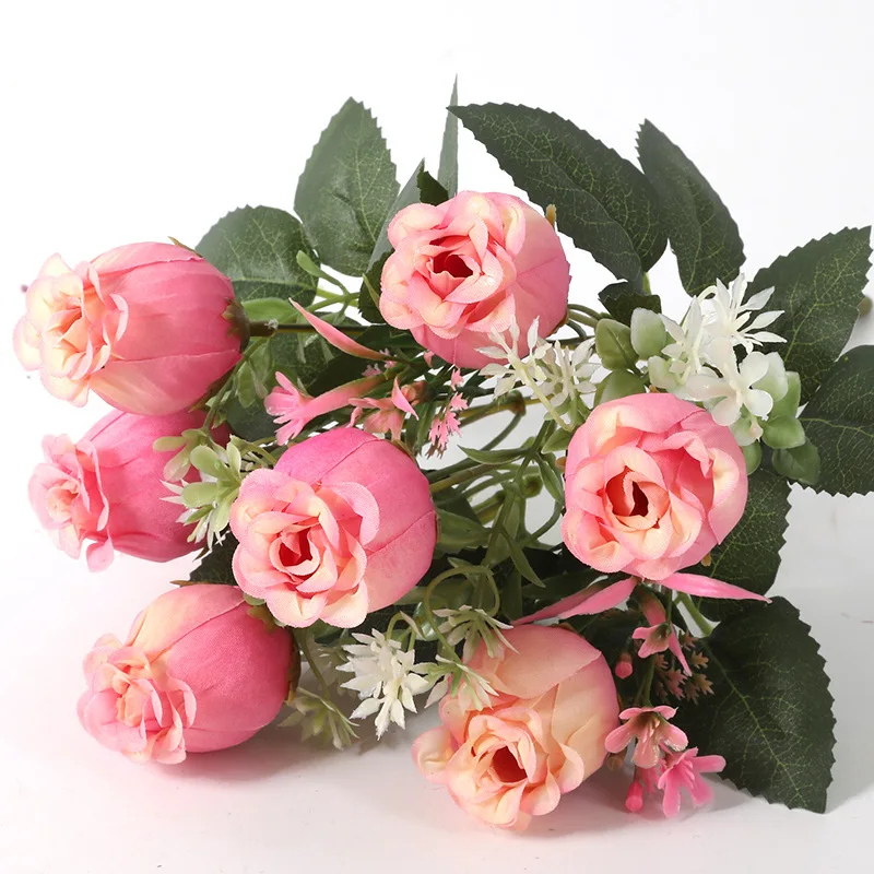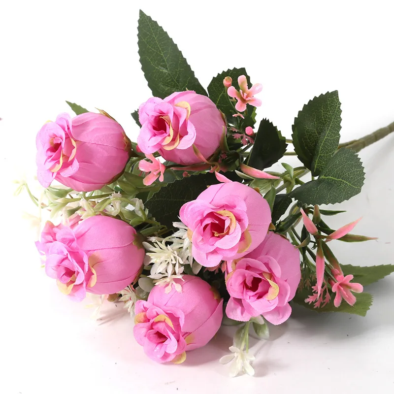 Европейские винтажные Искусственные Шелковые Чайные розы Букет 7 головок Свадебные домашние искусственные в стиле ретро вечерние цветы украшение своими руками