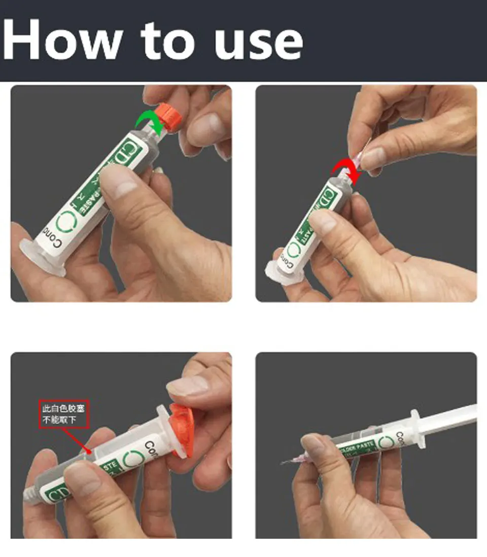 1. Использовать только с адекватной вентиляцией. 2. Паяльная паста содержит органический растворитель. Избегайте повторного контакта с кожей. Если паяльная паста попадет на вашу кожу, тщательно протрите ее спиртом и краску водой. 3. Чтобы быть осторожным, в операции следует избегать дыма, выделяемого растворителем во время операции, как можно больше, И не следует связываться с тканями кожи и слизистой оболочки слишком долго. Избегайте повторного дыхания пара. 4. Избегайте контакта с глазами. 5. Держите подальше от детей. Обратите внимание: 1. Светильник съемки и различные дисплеи могут привести к тому, что расцветка товаров в картинку, чтобы быть s светильник ly отличаться от реальных объектов. 2. Максимальная погрешность измерений составляет 2,0 см. 3. Два продукта на первом рисунке в основном показывают емкость продукта. Посылка содержит только один тип паяльной пасты, Наконечник иглы и толкатель. 4. Мы будем использовать различную упаковку в зависимости от страны назначения, в основном для удобного хранения
