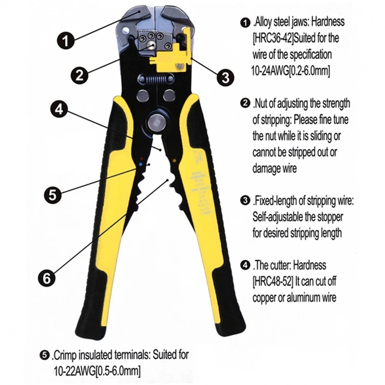 Клещи для зачистки проводов кабельный резак автоматические обжимные многофункциональные инструменты для чистки овощей и фруктов AWG10-24/0,2-6mm2