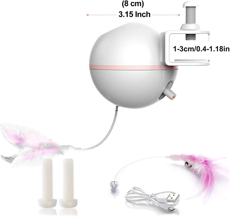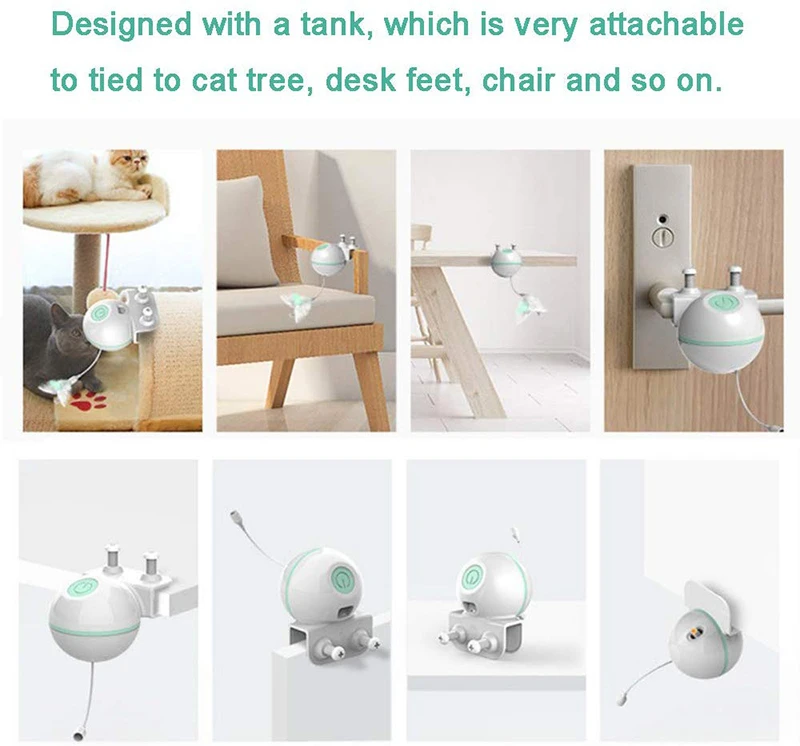 Простота установки-Электронные игрушки для кошек легко привязываются к дереву кошки, стопе или стулу (толщина не превышает 30 мм/1,1 дюйма) чтобы обеспечить большую область деятельности для питомца, чтобы избежать столкновений, когда ваш котенок играет.
