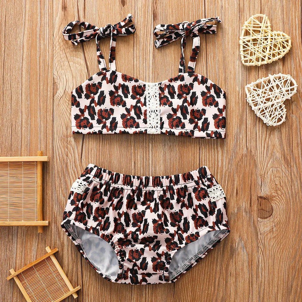 Летний детский купальник с леопардовым принтом для маленьких девочек; Купальный костюм; Комплекты бикини