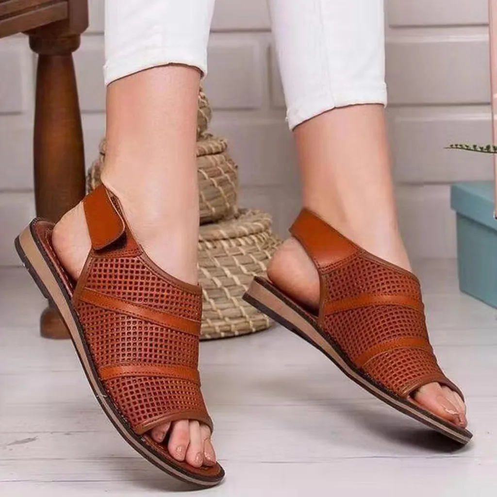 Женская дышащая обувь на плоской подошве с открытым носком; нескользящая обувь с круглым носком; сандалии-светильник