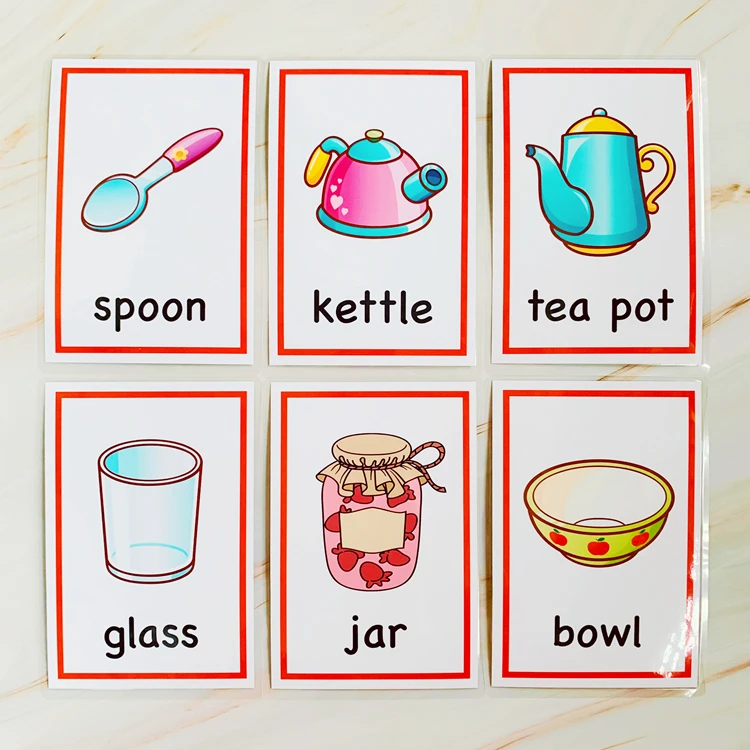 26 шт. английские слова карты для детей Обучающие карты кухонные принадлежности Монтессори Обучающие когнитивные флеш-карты игра с памятью