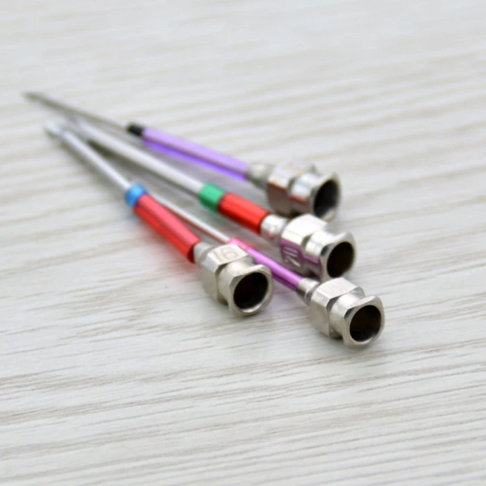 Размер иглы: (толщина иглы относится к внешнему диаметру, погрешность измерения ± 0,02, значение только для справки, есть негладкое место на игольном глазу, вы можете использовать тонкую наждачную бумагу для полировки)