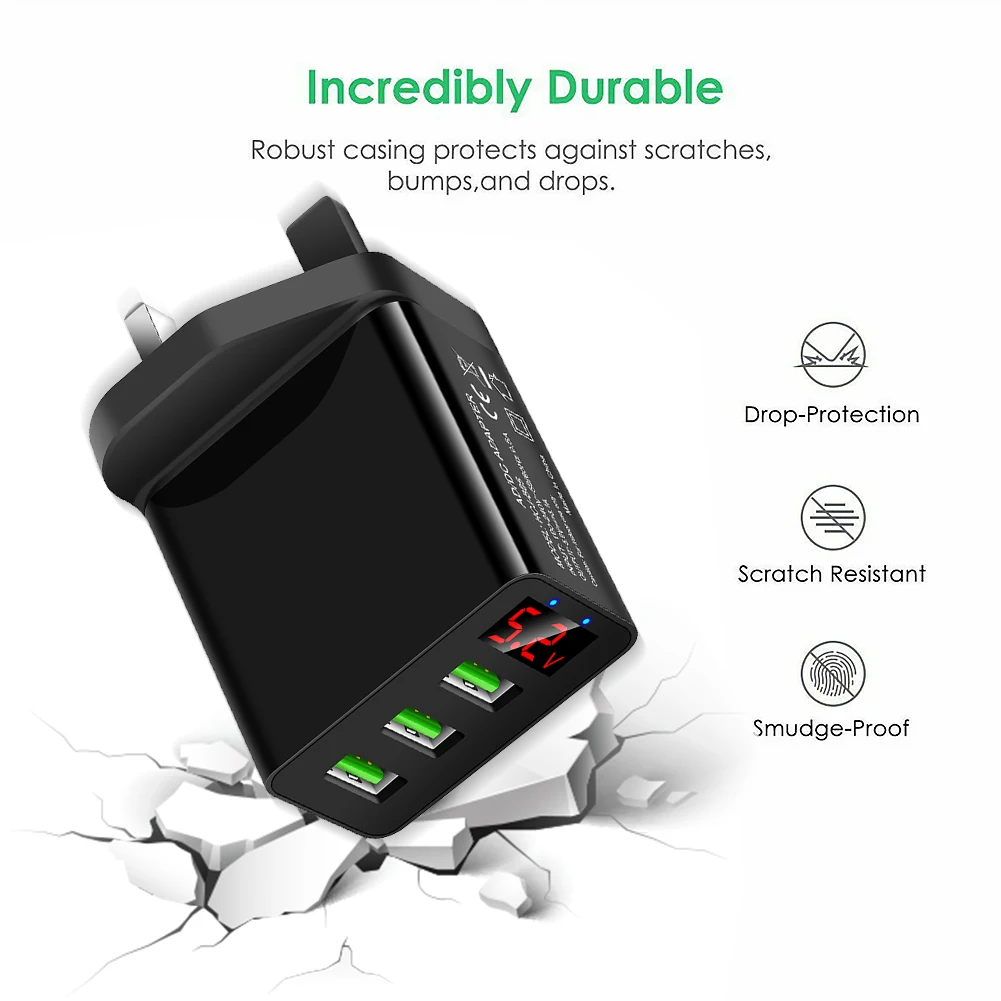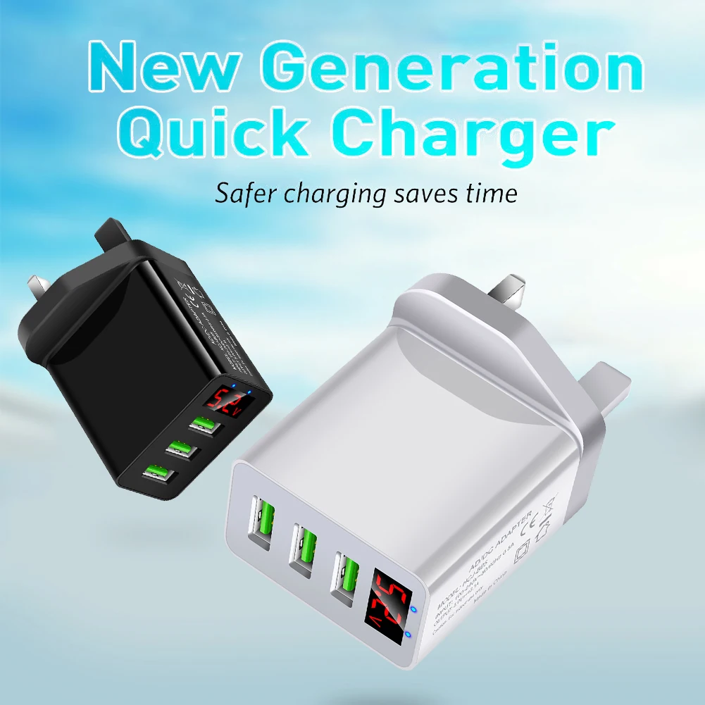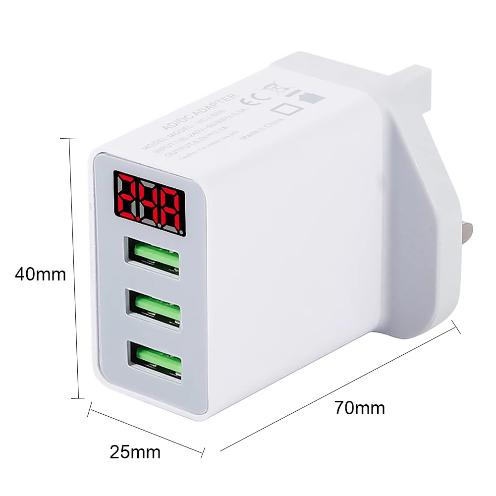 Портативный 3 порта USB Смарт зарядное устройство адаптер цифровой дисплей 5В 3.1A Быстрая зарядка зарядное устройство штепсельная вилка Великобритании для Android iOS мобильный телефон