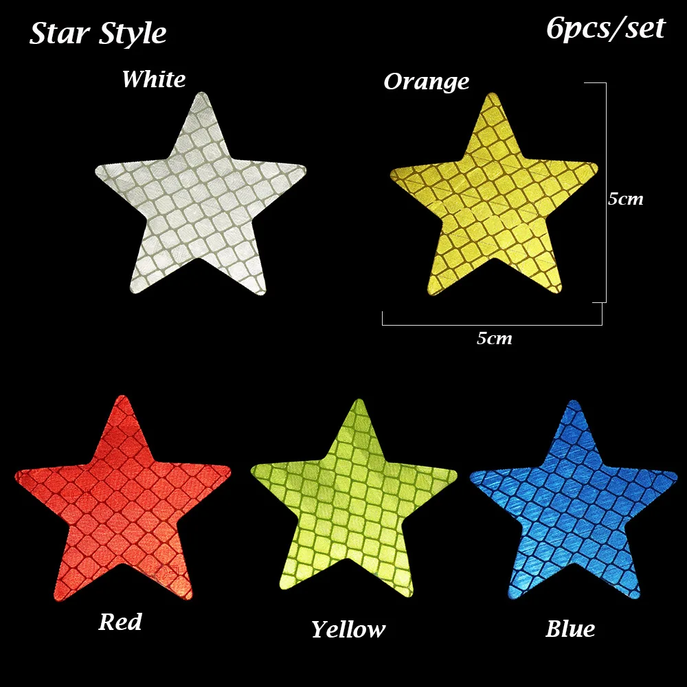 Абсолютно новый высококачественный Тип: светоотражающие наклейки Материал: эпоксидная смола + ПЭТ Стиль: полоска/звезда Цвет: красный/желтый/синий/оранжевый/белый Размеры: полоска стиль: 16*1,5 см. Звездный стиль: 5*5 см