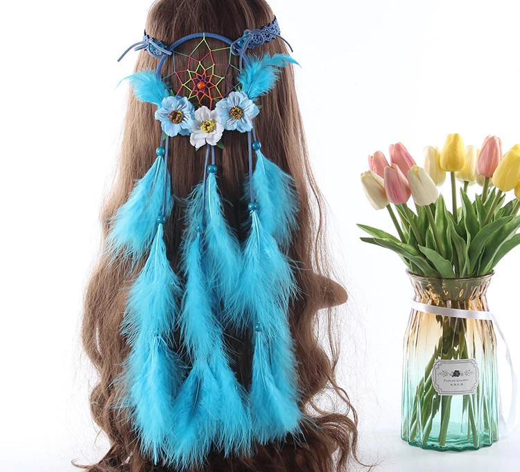 2020 Белый ручной работы Регулируемый Женский головной убор с перьями богемный Ловец снов каменные повязки для волос фестиваль головной убор для хиппи Новинка